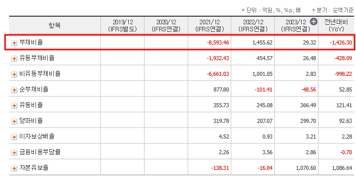 - 부채비율 개선 필요: 부채비율이 2021년과 비교해 큰 폭으로 개선되었으나, 여전히 안정화 단계가 필요합니다.