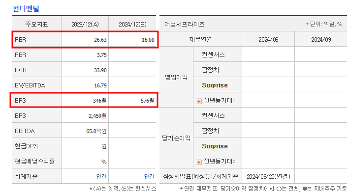 - EPS: 346원 (2023년) → 576원(2024 예상)