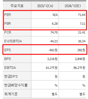 에이치브이엠의 EPS는 2023년 기준 -661원으로 적자를 기록 중이며, 2024년에는 282원으로 개선될 것으로 예상됩니다. 이는 기업의 경영 개선과 고부가가치 제품 판매 확대에 따른 것입니다. BPS는 3,216원으로 자산가치가 높은 편이나, 주가와 비교했을 때는 부담스럽게 느껴질 수 있습니다.