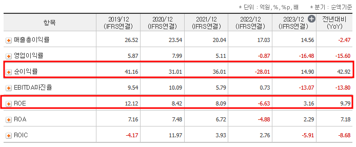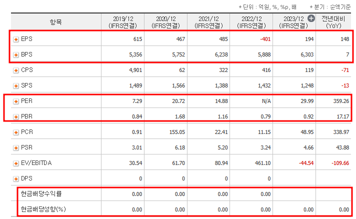 - EPS (주당순이익): 2024년 EPS는 194원으로 2023년 -401원에서 흑자전환할 것으로 예상됩니다.
