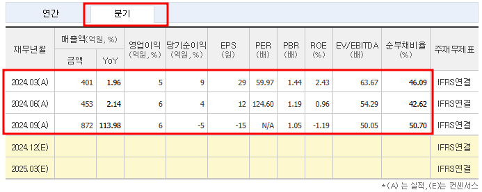 - 52주 최고가/최저가: 최고가 3,220원(2024년 12월 9일), 최저가 998원(2024년 11월 21일)