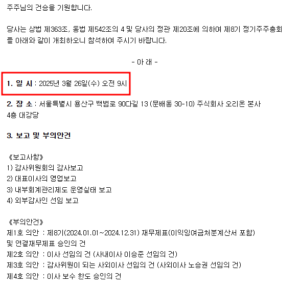 배당금 지급일 | 주주총회 이후 1개월 이내 (2025년 4월 25일 이전 예상) |