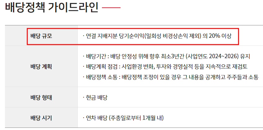 | 배당금 지급일 | 주주총회 이후 1개월 이내 (2025년 4월 25일 이전 예상) |