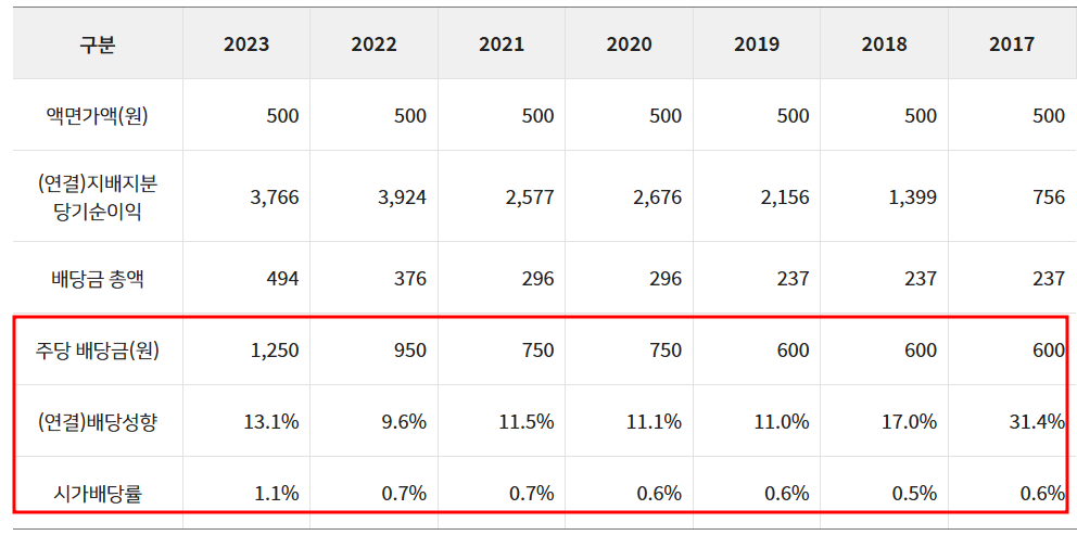 | 1주당 배당금(원) | 2,500원 (보통주 기준) |