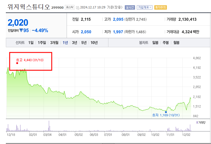 - 52주최고/최저가: 4,440원/1,169원