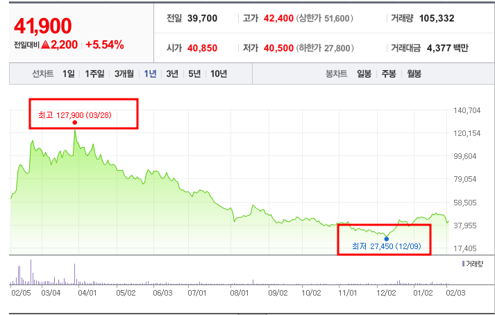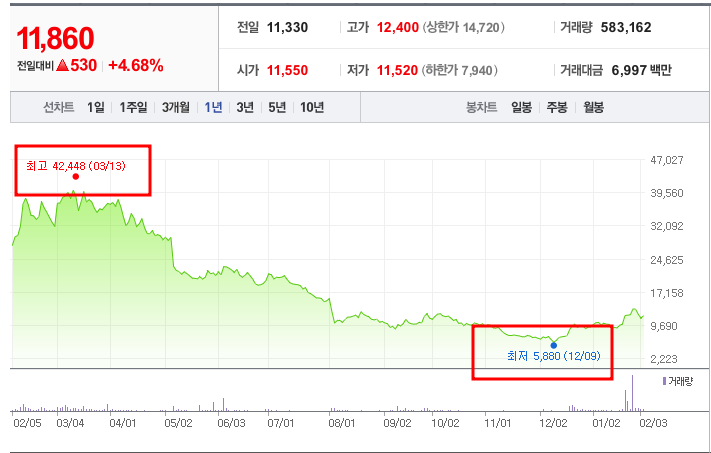 - 52주최고가/최저가:42,448원/5,880원