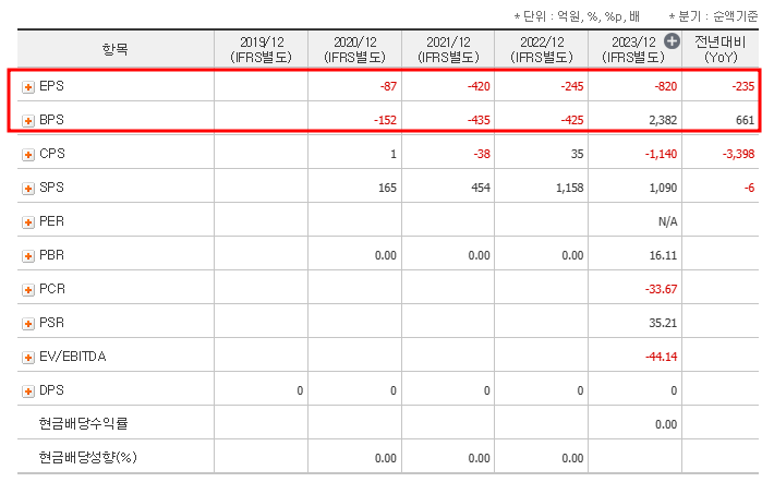 - PER/EPS: 자료없음/-820원
