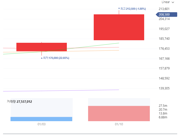 SK하이닉스는 삼성전자와 함께 국내 반도체 대기업으로, 최근 글로벌 IT 및 반도체 전시회인 CES 2025에서 젠슨 황 엔비디아 CEO의 기조연설 이후 반도체주에 대한 관심이 집중되었습니다. 이에 따라 외국인들의 저가 매수세가 유입되었고, SK하이닉스와 삼성전자가 주요 수혜를 입었습니다.