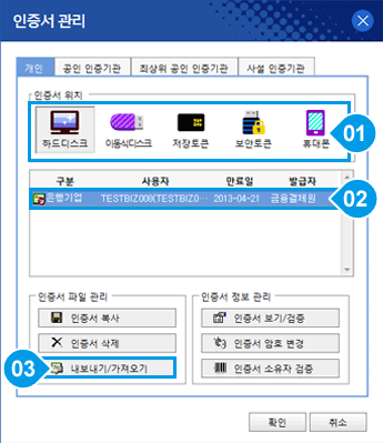 공동인증서 가져오기 내보내기 시 주의사항