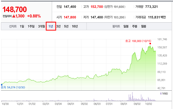 최근 주가 흐름을 보면, 유한양행의 주가는 1년 동안 꾸준히 상승해 왔으며, 현재 코스피에서 38위에 해당하는 시가총액 11조 8,469억 원을 기록하고 있습니다. 이러한 시가총액 규모는 유한양행이 국내 제약 업계에서 차지하는 비중과 안정성을 보여줍니다. 거래량도 상당히 높은 편으로, 10월 28일 기준 거래량은 약 730,139주에 달해 투자자들 사이에서 꾸준한 관심을 받고 있음을 알 수 있습니다.