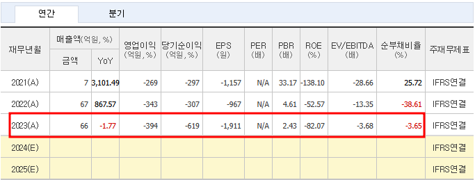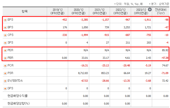 - PER: 적자 상태로 인해 산출되지 않음
