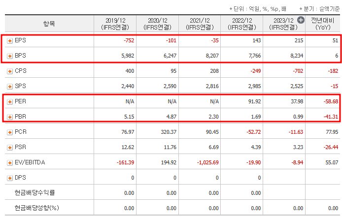 • PBR/BPS: 3.92배/4,996원