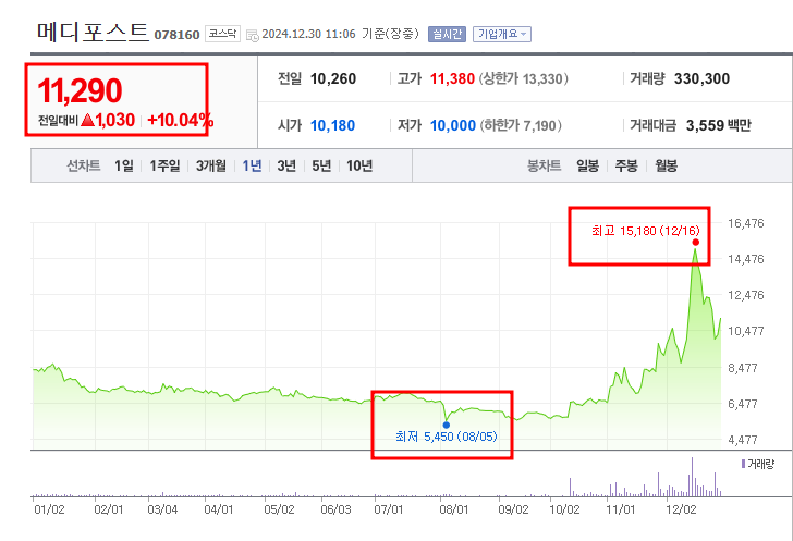 • 52주최고가/최저가: 15,180원/5,450원