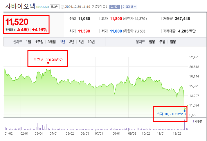• 52주최고가/최저가: 21,000원/10,500원