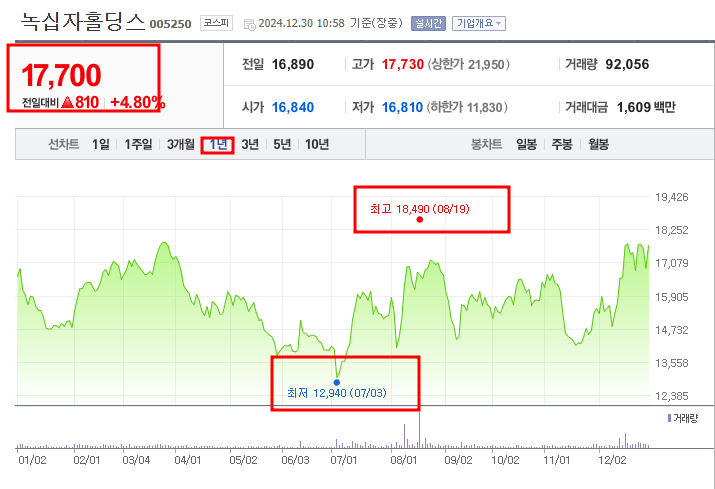 • 52주최고가/최저가: 18,490원/12,940원