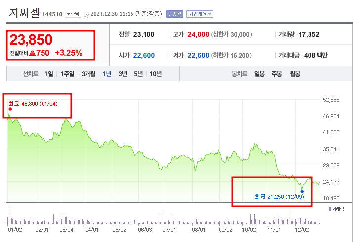 • 현재주가: 23,800원(12월 30일 기준)