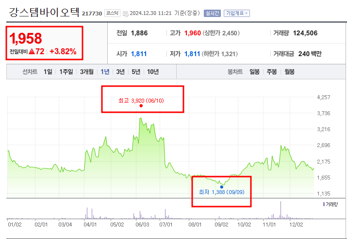 • 52주최고가/최저가: 3,920원/1,388원