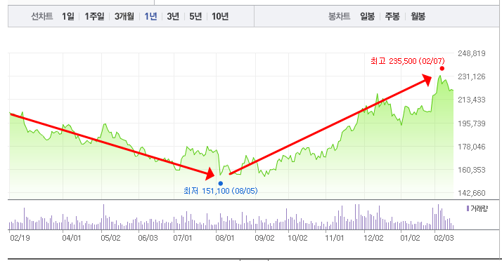 - 52주최고가/최저가: 235,500원/151,100원