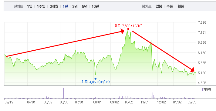 - 52주최고가/최저가: 7,300원/4,850원