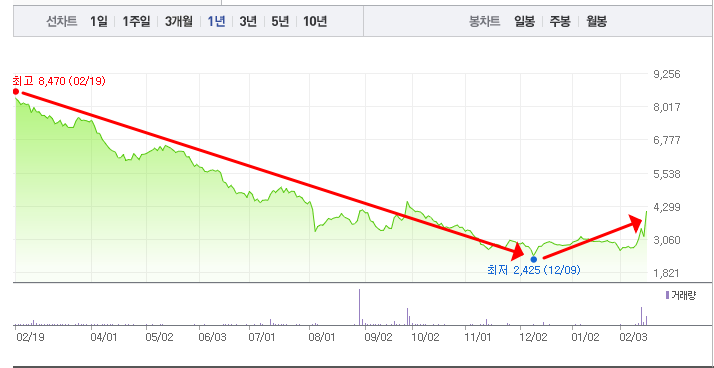 - 52주최고가/최저가: 8,470원/2,425원