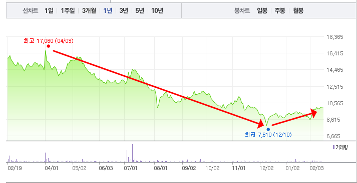 - 52주최고가/최저가: 17,060원/7,610원