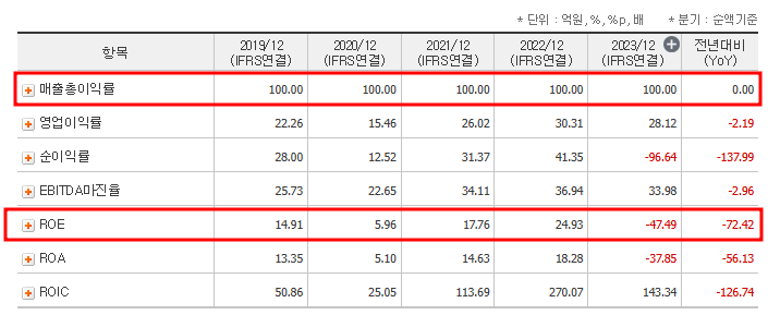 - 2022년: 매출액 241억 원, 영업이익 73억 원, 당기순이익 100억 원