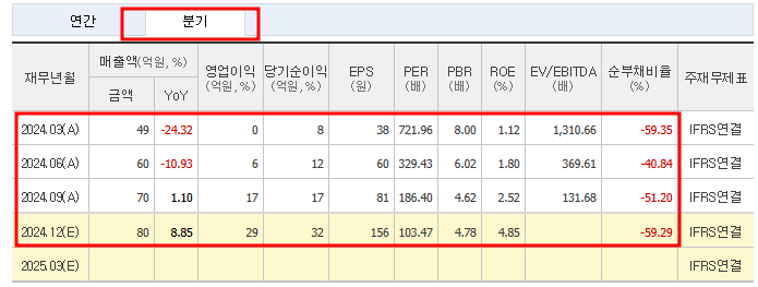 - 2024년 4분기(예상): 매출 80억 원, 영업이익 29억 원