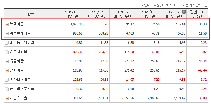 - 부채비율: 105.01%로 안정적인 수준.