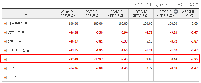 - ROE(자기자본이익률): -0.36%로 여전히 개선 필요.