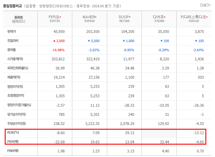 • PER: 58.24배로 동종업계 평균을 상회.
