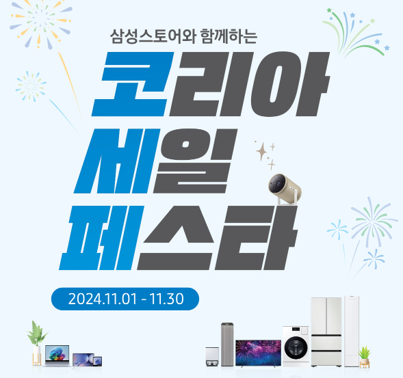 매년 수많은 소비자들이 기다리는 대한민국 최대 쇼핑 축제, 코리아 세일 페스타가 2024년에도 더욱 확대된 규모로 돌아옵니다. 이번 코리아 세일 페스타는 11월 9일(토)부터 11월 30일(토)까지 총 22일간 진행될 예정으로, 다양한 산업 분야의 2,600개 이상의 기업이 참여하여 소비자들에게 풍성한 할인 혜택과 쿠폰을 제공할 예정입니다. 특히, 삼성전자도 이번 행사에 참여하여 인기 가전제품을 포함한 다양한 품목에서 특별 할인 혜택과 쿠폰을 제공합니다. 이 포스팅에서는 코리아 세일 페스타에서 삼성전자 품목 할인쿠폰을 받는 방법과 행사 정보를 자세히 소개하겠습니다.