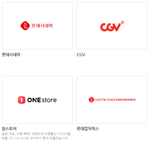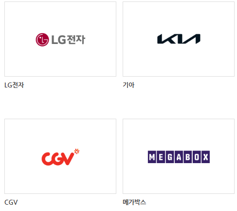 | 영화관 | CGV, 메가박스, 롯데시네마 | 영화 + 콤보 3,000원 할인 |