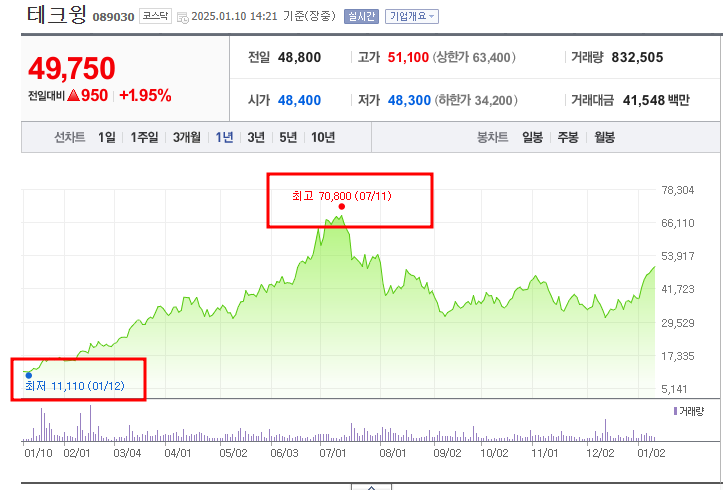 테크윙은 2002년에 설립된 반도체 후공정 검사장비 전문기업으로 2011년에 코스닥에 상장했습니다. 메모리 테스트 핸들러 분야에서 글로벌 시장 점유율 60% 이상으로 세계 1위를 차지하고 있는 기업입니다. 최근에는 HBM 테스트 장비와 웨이퍼 테스트 장비로 사업영역을 확장하고 있습니다.