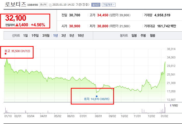 코스닥 외국인 순매수 종목 상위 6위부터 10위에는 게임 전문업체인 펄어비스, 로보티스, 엔젤로보틱스, 서희건설, 에스피지가 포함되었습니다. 로봇 관련주가 다수 포함되어 있습니다.