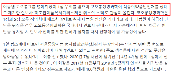 | 법적 리스크 해소 | 이웅열 명예회장 무죄 판결 |