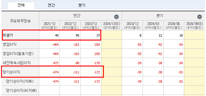 | 재무 상태 | 영업손실 지속 |