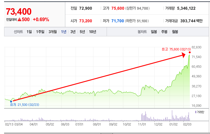 - 52주최고가/최저가: 75,600원/21,500원