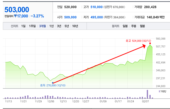 - 52주최고가/최저가: 524,000원/145,861