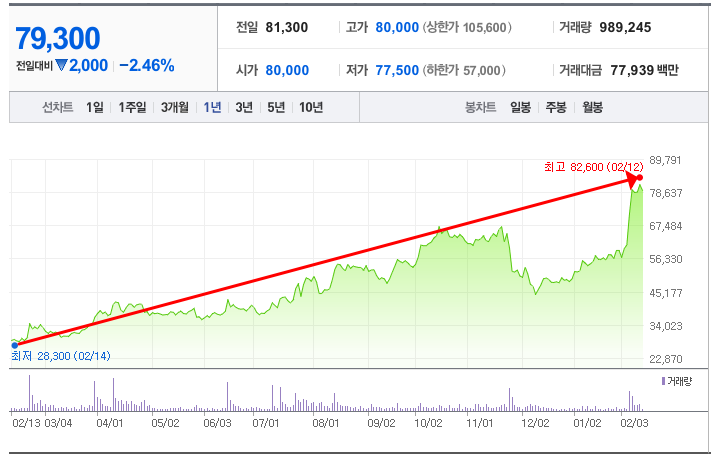- 52주최고가/최저가: 82,600원/28,450원
