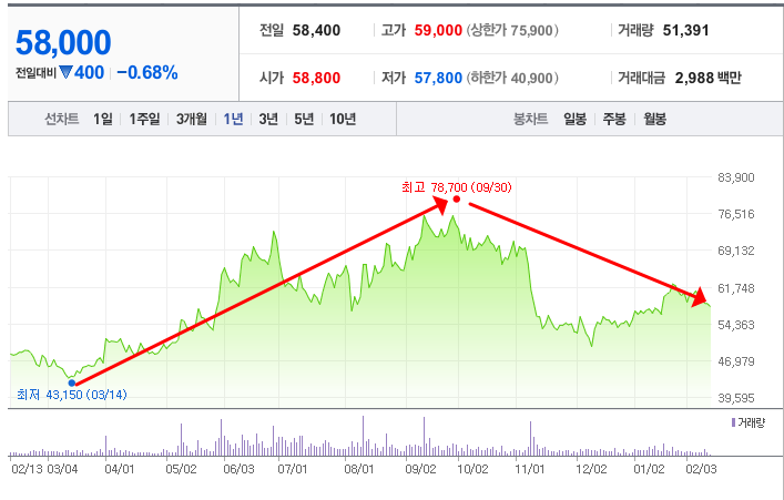 - 52주최고가/최저가: 78,700원/43,150원