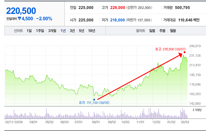 - 52주최고가/최저가: 235,500원/151,100원