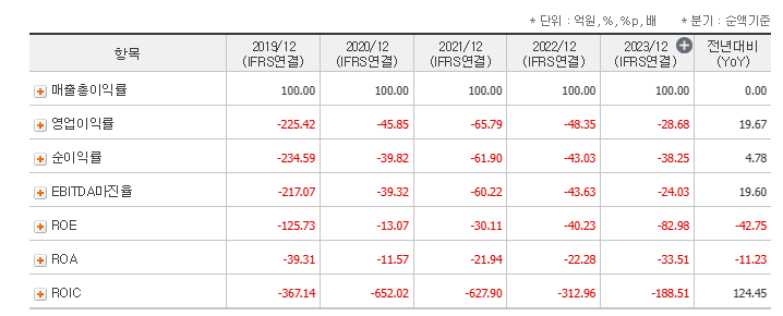 - 2023년까지 영업이익 및 순이익 적자