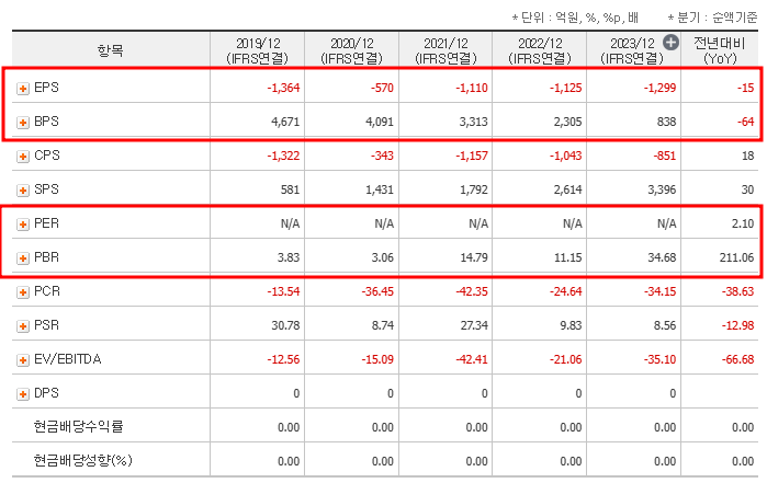 - 2024년 예상 EPS(주당순이익): -404원