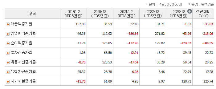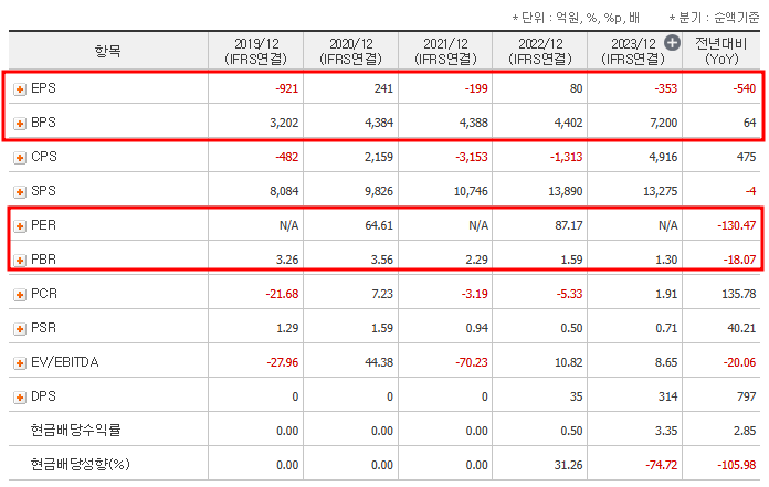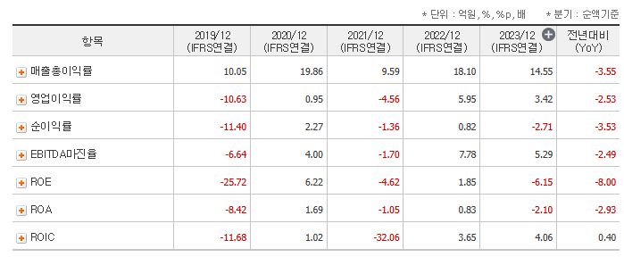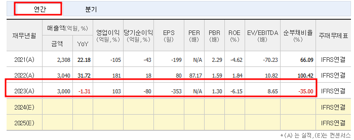 - PER: -26.56배 (2023년) → 153.90배 (2024년 예상)