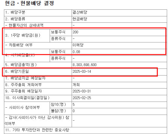 배당 기준일 2025-03-14