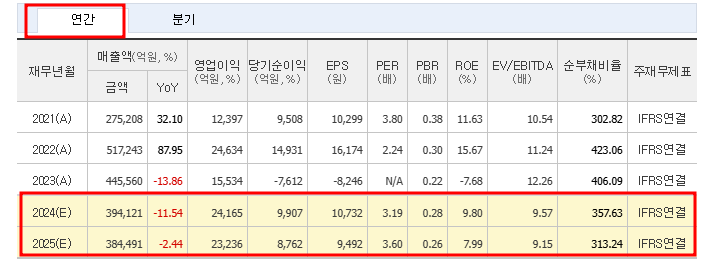 • 2024년 예상 매출: 394,121억 원 (추정치)