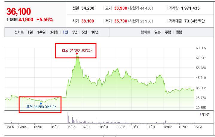 • 현재 주가: 36,100원