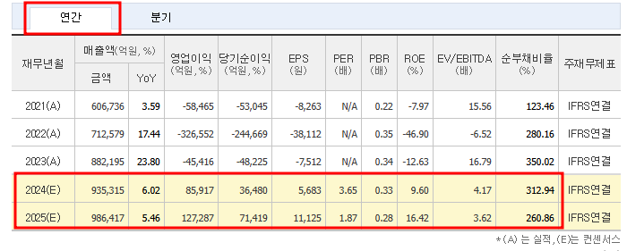 • 2024년(예상): 매출 93조 5,315억 원, 영업이익 8조 5,917억 원