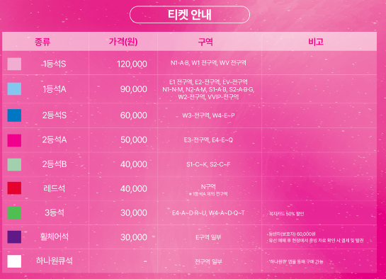 | 좌석 종류 | 가격(원) | 좌석 구역 | 비고 |