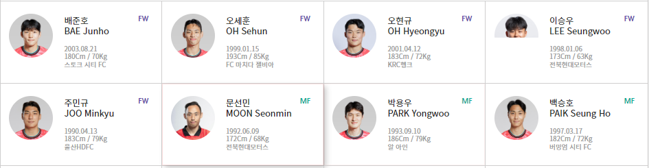 | 공격: 이승우 (전북), 문선민 (인천), 조규성 (미트윌란) |